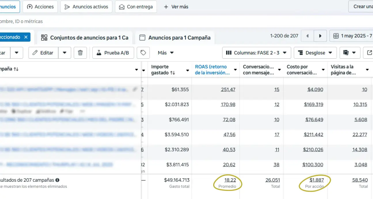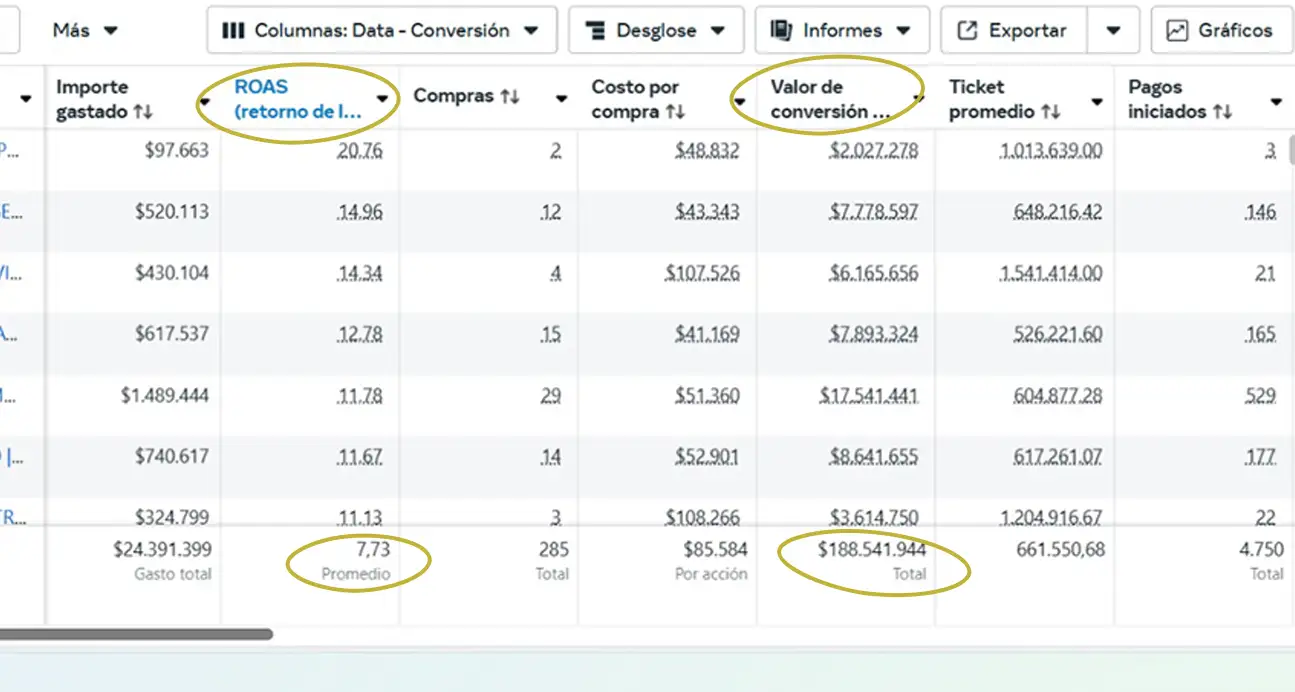 Este es un ROAS (retorno de la inversión publicitaria) de 18.22 ¡una locura de resultado para nuestro cliente!